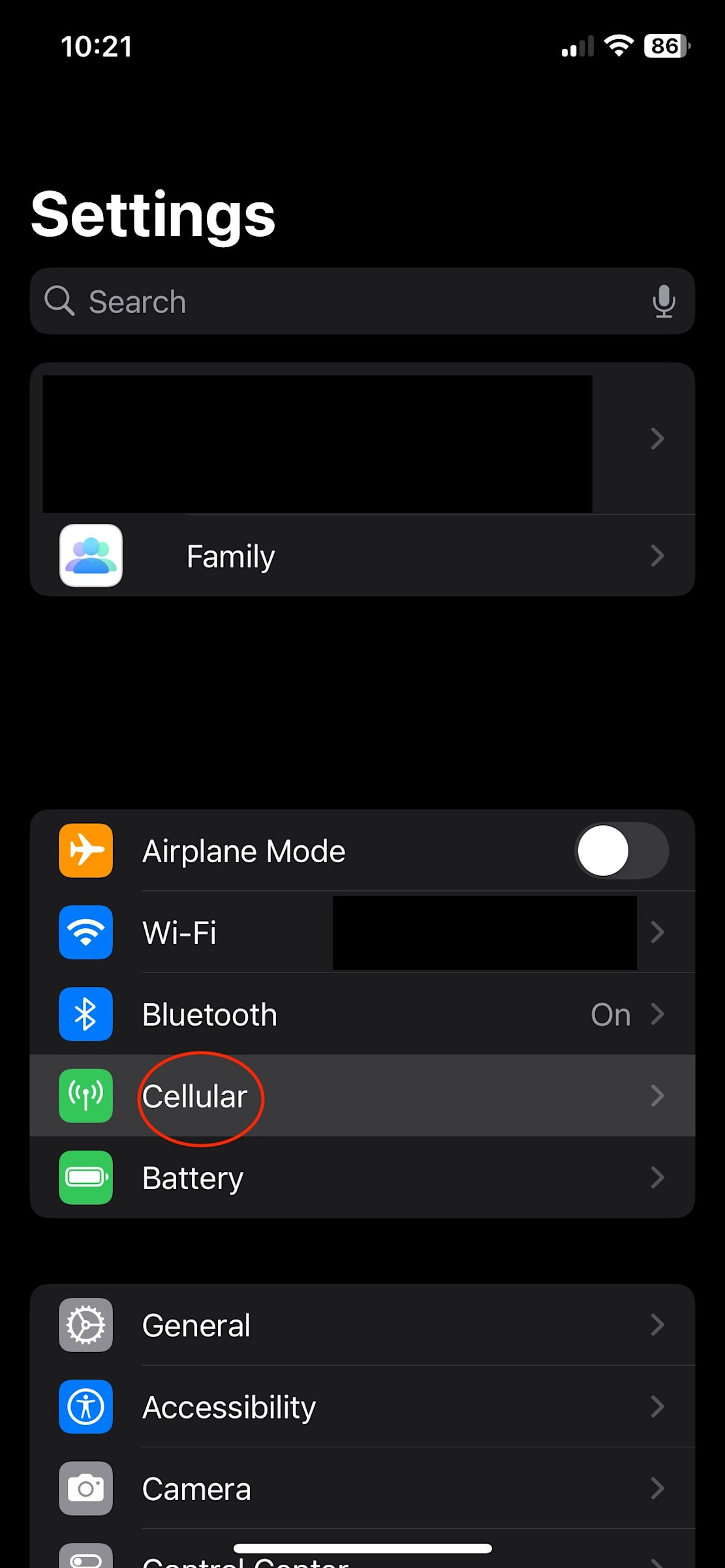 - From the listed options, tap Cellular.