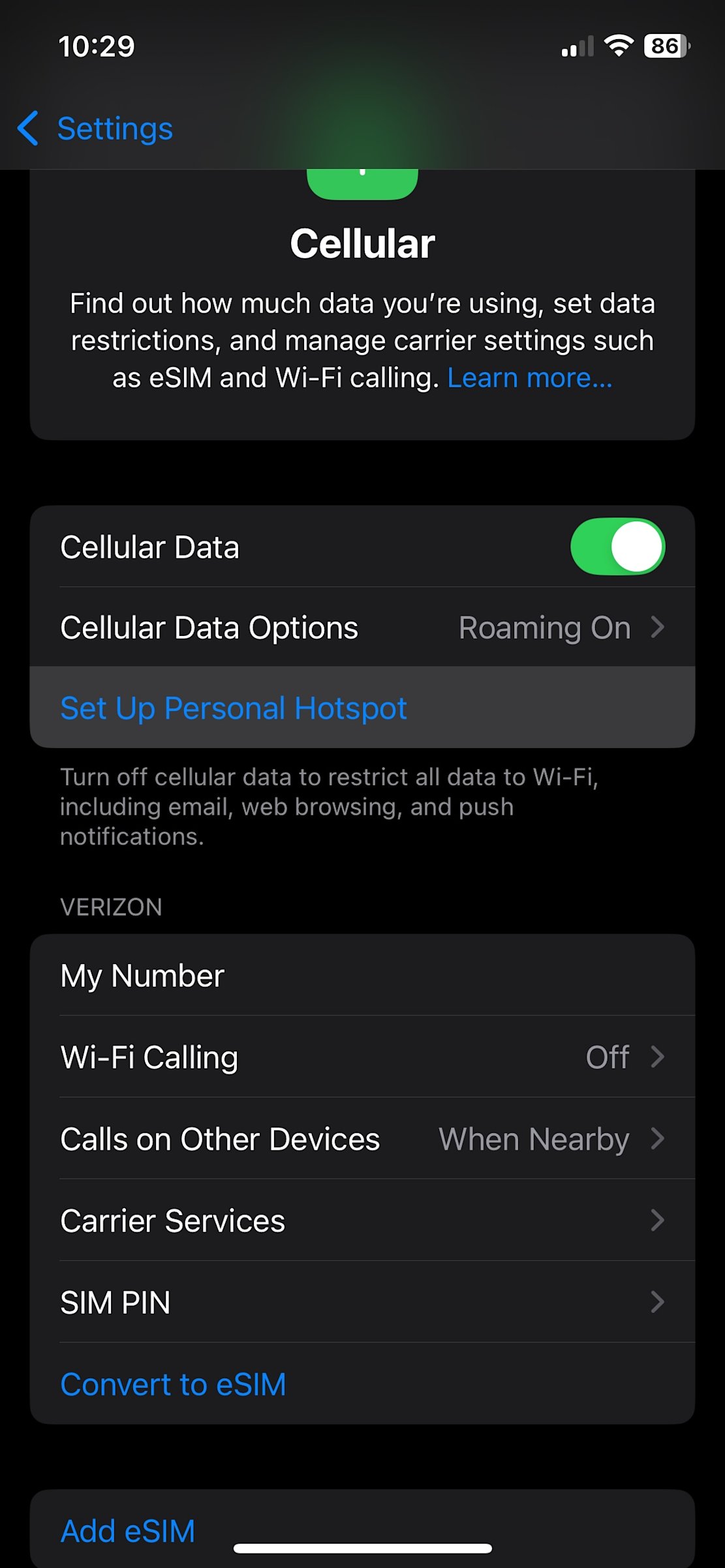 If you’ve previously set up a hotspot on your phone, the Personal Hotspot option will appear.